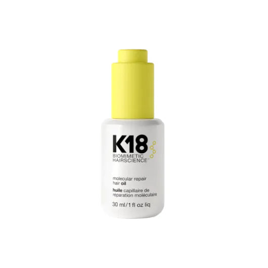 - Felületi szinten az azonnali frizz-kontroll érdekében: Amellett, hogy a frizz fő okát is kezeli, a K18 hajolaj természetes olajokkal, például avokádó- és napraforgóolajjal, hemiszkvalánnal és szkvalánnal van gazdagítva, hogy táplálja a hajat, miközben kisimítja a frizzt és a szálló szálakat. Ez fokozza a szín élénkségét és fényét, valamint hővédelmet nyújt 232°C-ig (450°F). A hemiszkvalán, szkvalán és avokádóolaj a haj felületén fejti ki hatását, kisimítva a kutikulát, rugalmasságot és fényt biztosítva, erősítve a haj természetes nedvességvédő rétegét és fokozva a peptid frizz-csökkentő hatását.